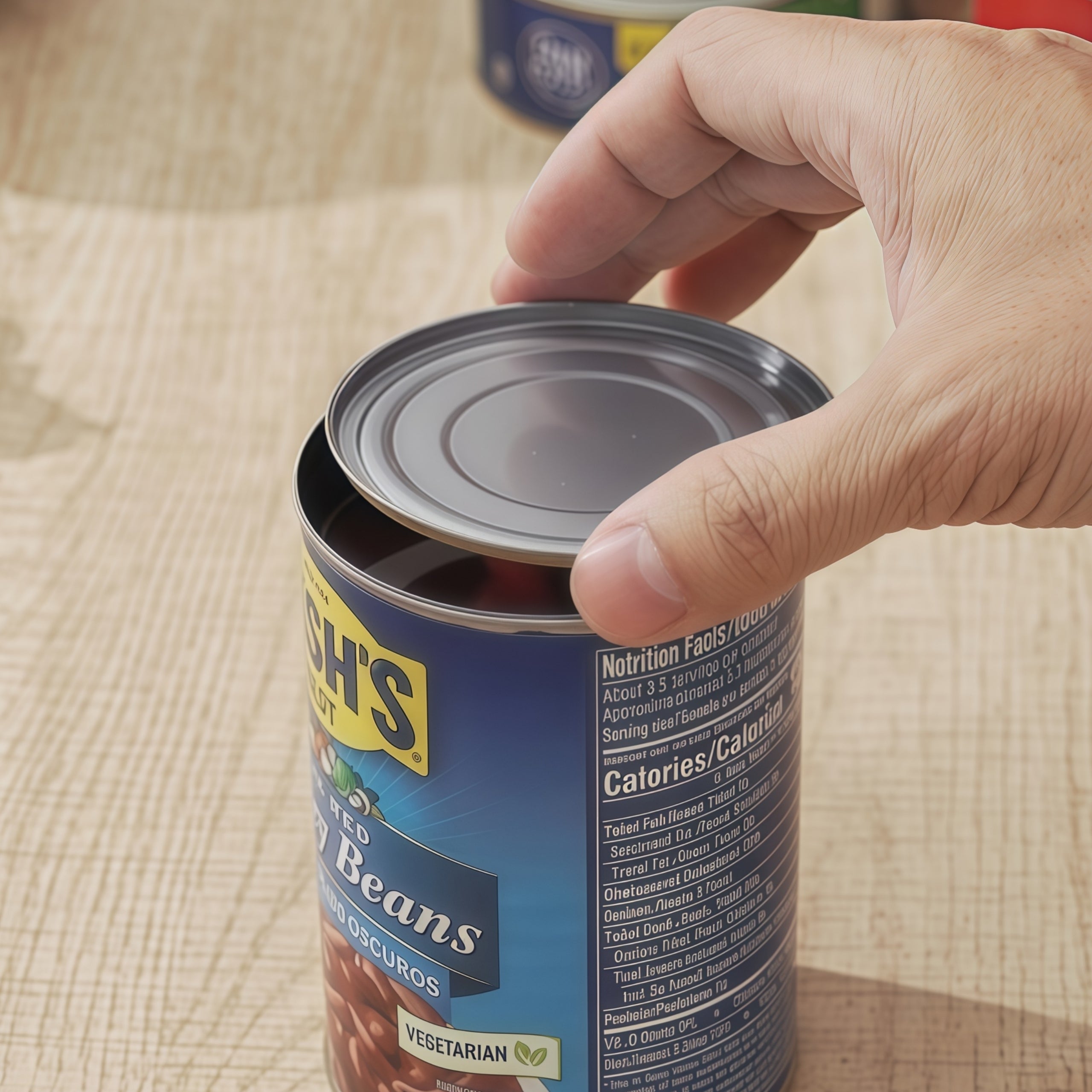 The side-cutting blade never touches food, keeping contents clean and preventing metal contact-ideal for wet, messy, or sticky cans.