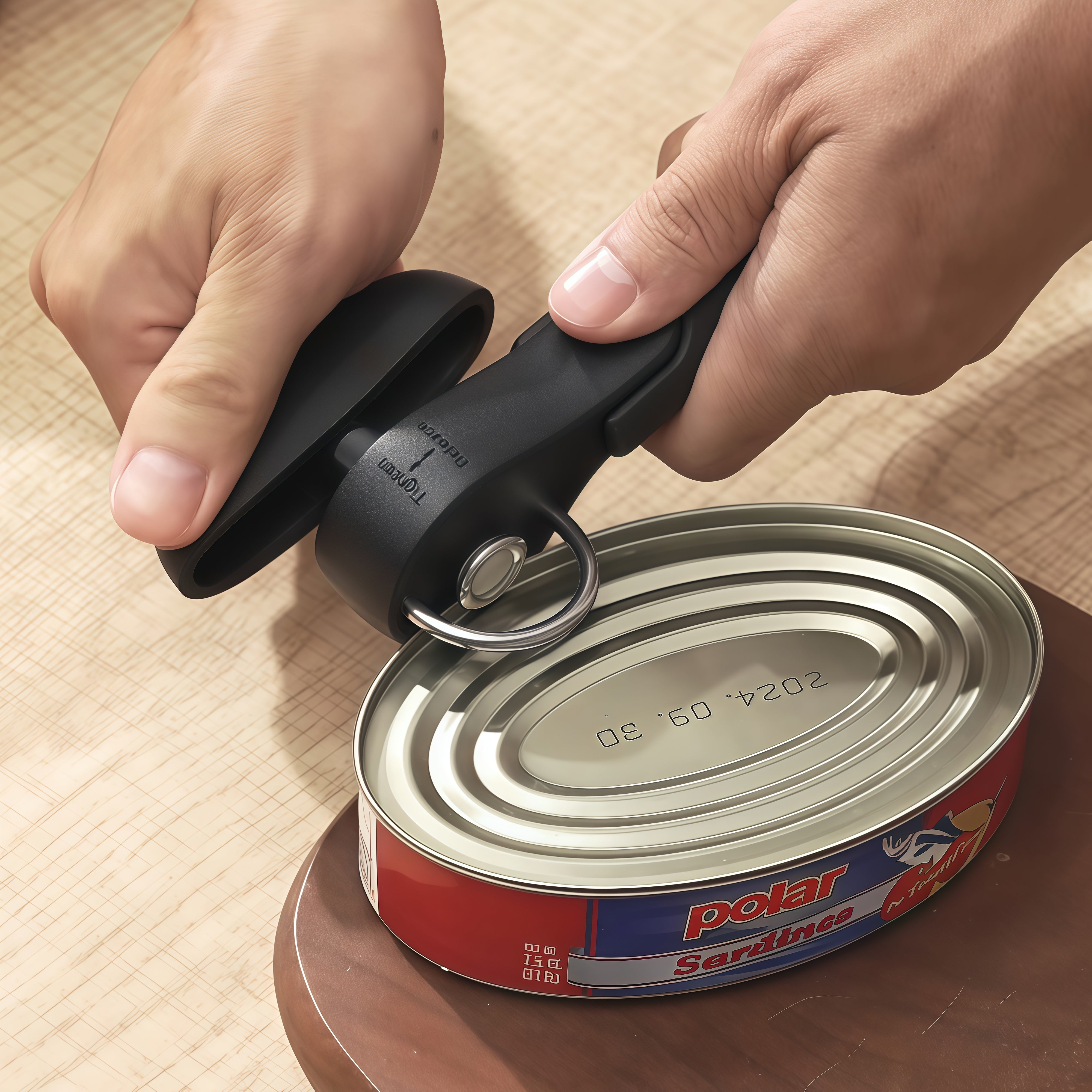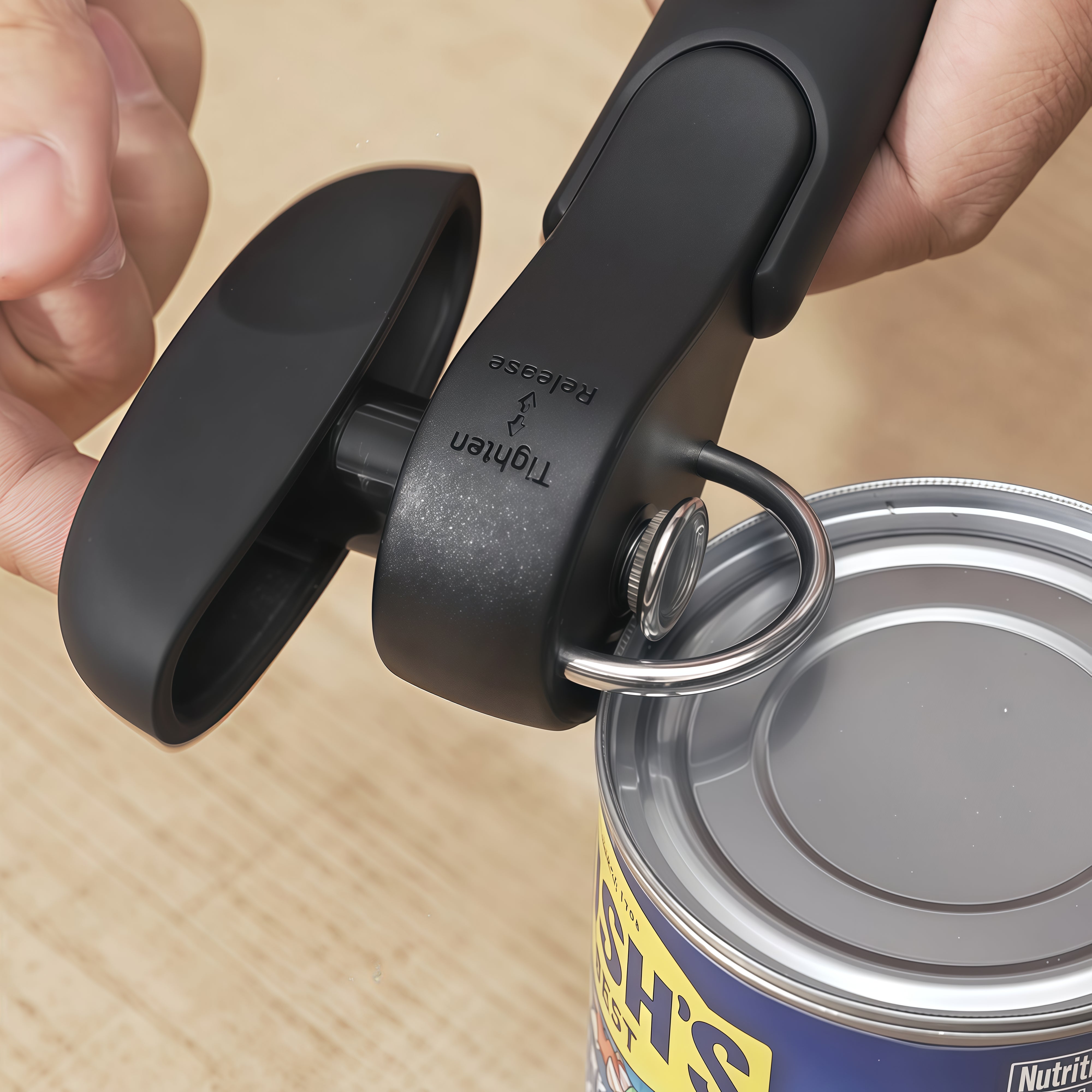 3.Secure & Easy to Use: Featuring a fully hidden cutting mechanism and non-slip ergonomic rubber handle, this safe can opener provides a comfortable, stable grip and effortless operation, it opens cans safely and seamlessly without leaving sharp edges. The unique Tighten & Release indicator intuitively guides you when to tighten and release, making it easy for anyone to use, including seniors