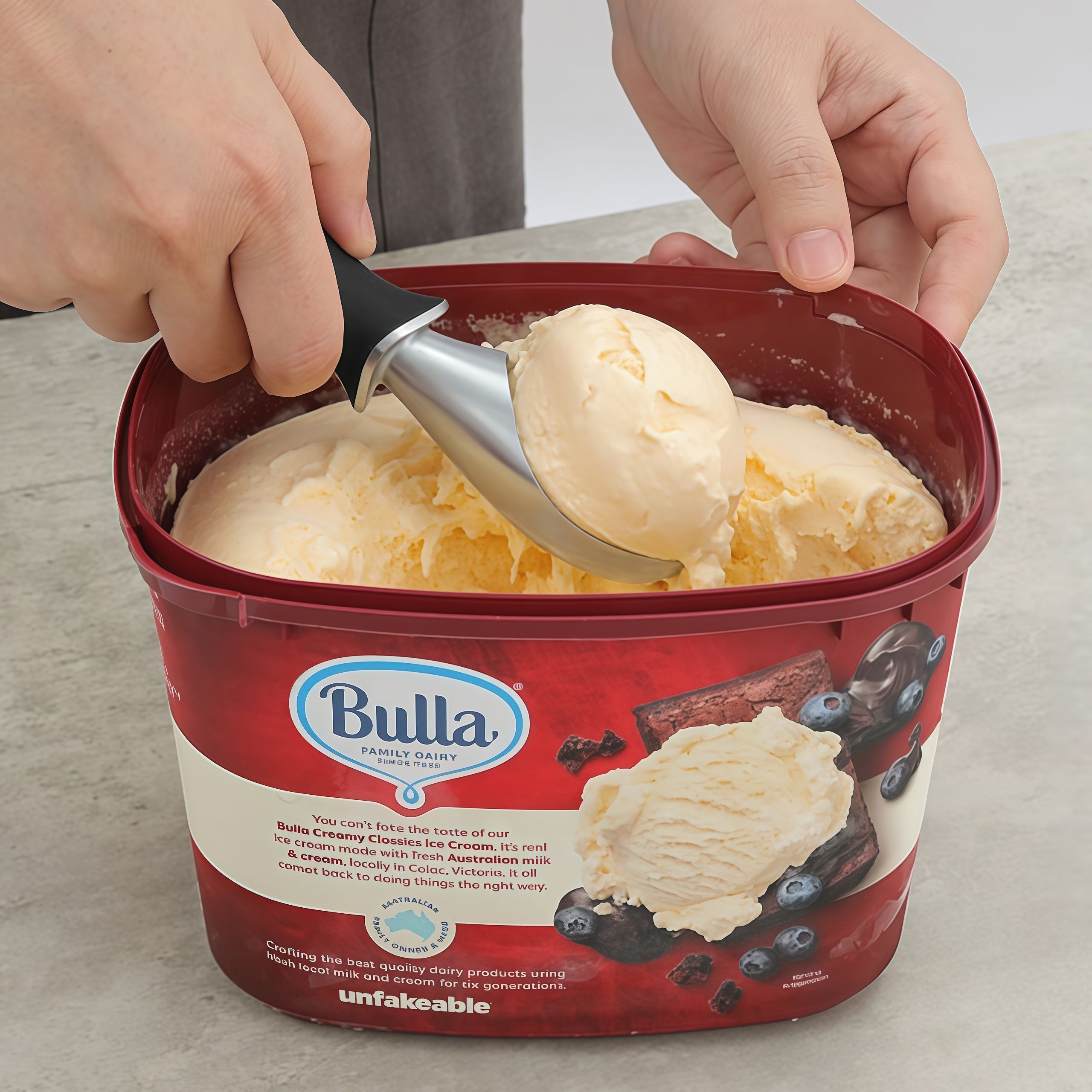 Crafted from solid zinc alloy, the thickened scoop head ensures strength and prevents bending or breaking when scooping hard ice cream.