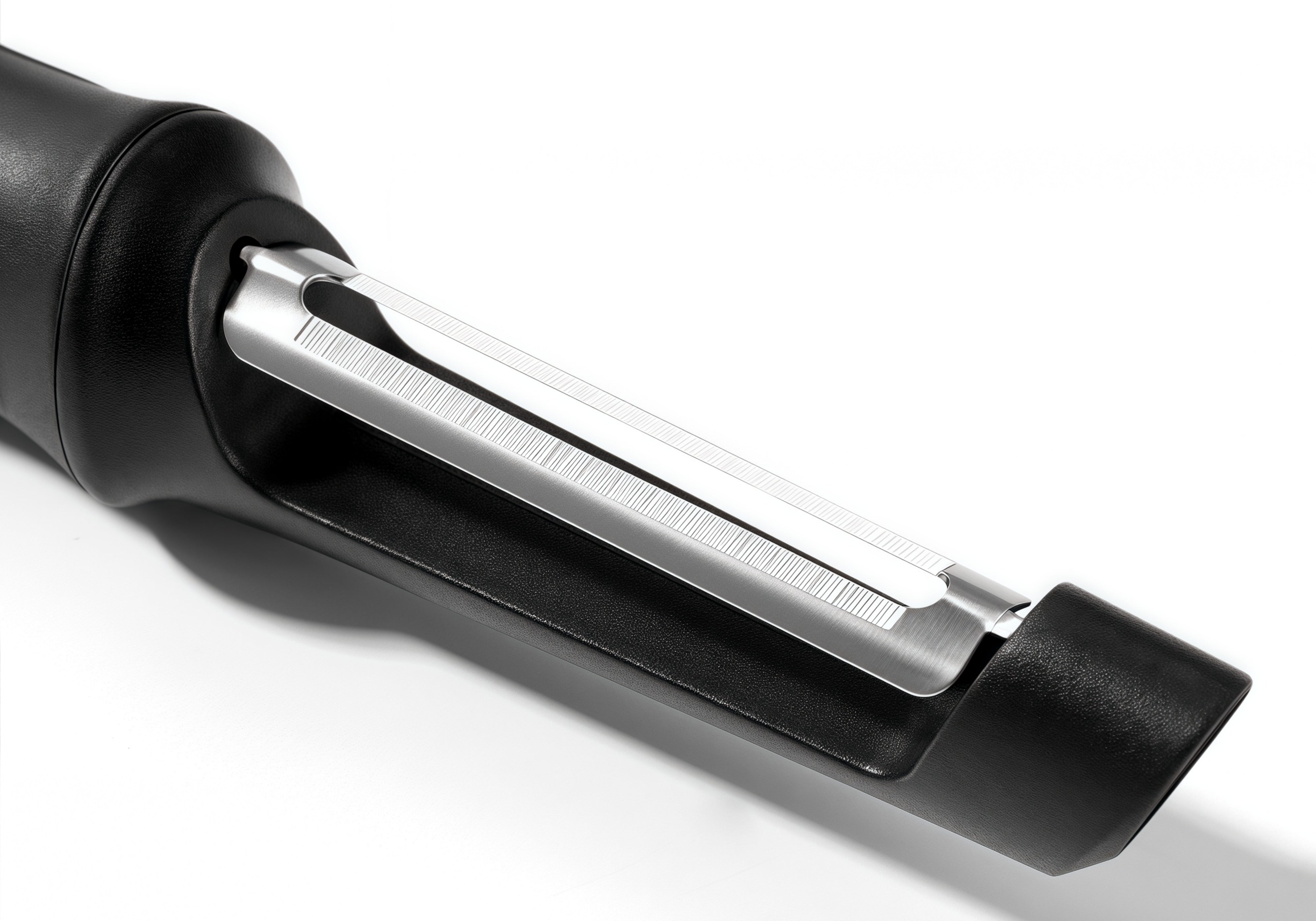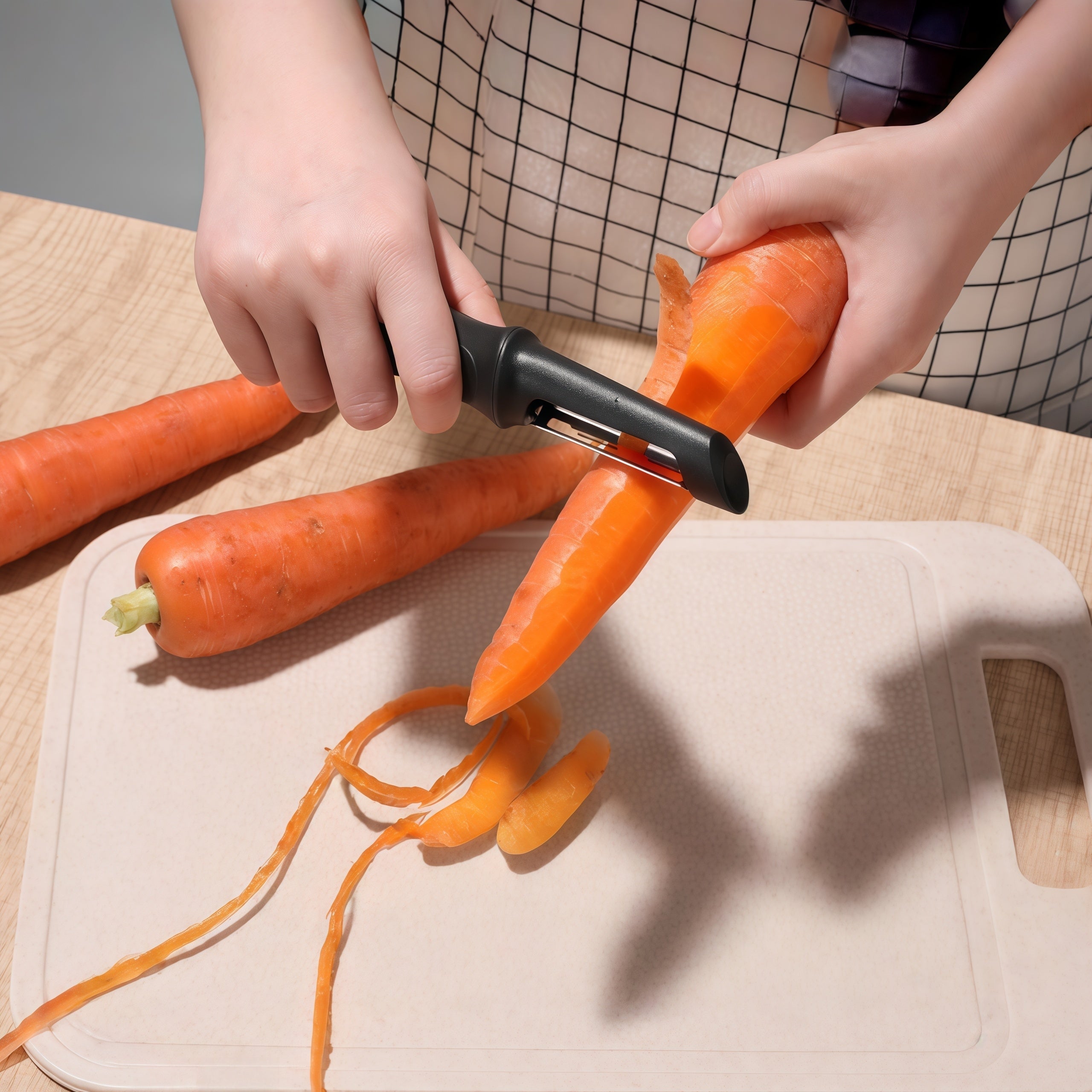 High-quality stainless steel blade with an optimized angle for long-lasting sharpness, precisely peeling vegetable skins and reducing food waste.
